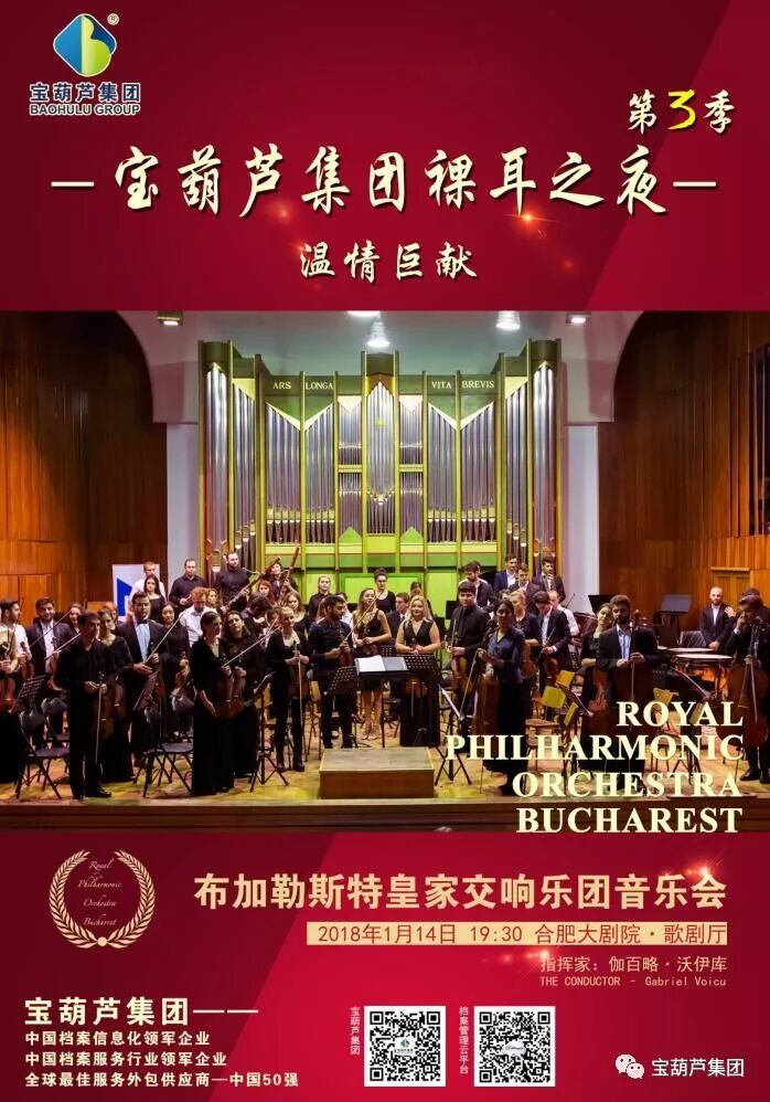 继2016年第1季《宝葫芦集团裸耳之夜——魔弓传奇·吕思清小提琴独奏音乐会》、2017年第2季《宝葫芦集团裸耳之夜——德国汉堡节日交响乐团新年音乐会》之后,2018年第3季《宝葫芦集团裸耳之夜——布加勒斯特皇家交响乐团音乐会》将于1月14日19:30在合肥大剧院再度来袭,温情巨献。