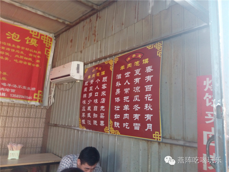 营业时间:早6:30到下午3:00.牌子上对羊肉泡馍有比较详细的介绍。