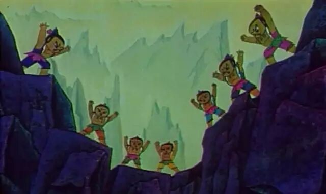 剧情你立马就能脱口而出吧~七个葫芦娃,先后单打独斗妖精,纷纷被捉,最小的七娃还差点被妖精“策反”。