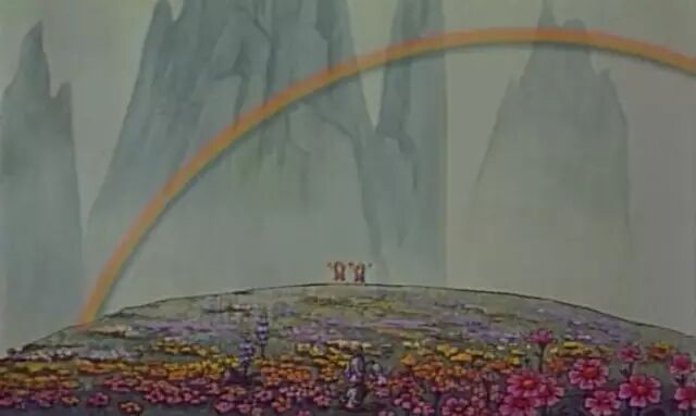 这个造型完全和葫芦娃一模一样啊!小葫芦娃们的种子又出自这位山神头顶上的葫芦山,你说不是亲爹神都不相信!动画的最后,七个葫芦娃合体化成七彩山,再次验证葫芦娃他爸爸——是山神!