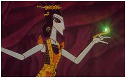 从五官来看,蛇精可能并不是汉族血统。那戳死人的锥子下巴,棱角分明的面部线条,青绿色的肤色和那充满韵律的舞蹈风格……你是不是也联想到另外一个国家:印度。