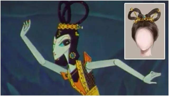发式是标准的双环望月髻,这种发型最先流行于南北朝时期,服装上,根据高腰和低胸的特点,可将范围锁定到南北朝和隋唐时期。