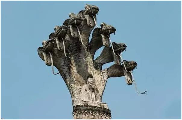 。在印度各地至今保留了许多蛇与佛共生共存的雕塑: