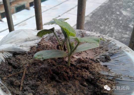 2. 葫芦定根生长后,将较弱的一颗小苗拔除,留一颗即可;