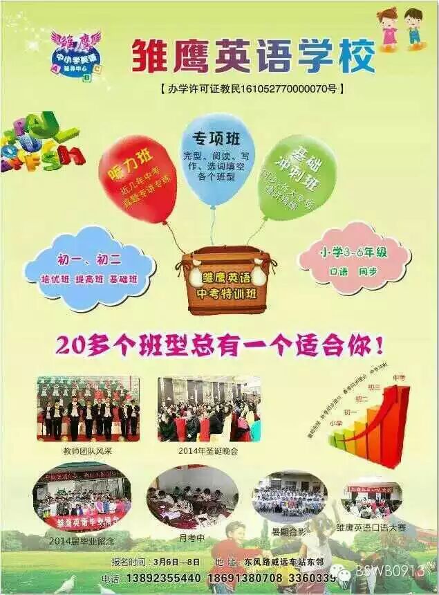 ——招聘:英语教师,工作地点白水县城,双休,待遇优。电话:18691380708编号:(20150423)