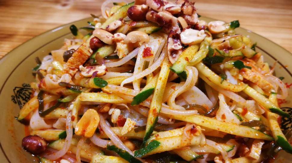 炎炎夏日,没有胃口吃饭,一碗酸辣爽口的凉皮既开胃又消暑。凉皮的制作很简单,先是将面粉洗出面筋和面浆,面筋蒸熟备用,将面浆铺在有蒸布的蒸笼上,蒸上三五分钟,一张凉皮就做成了。