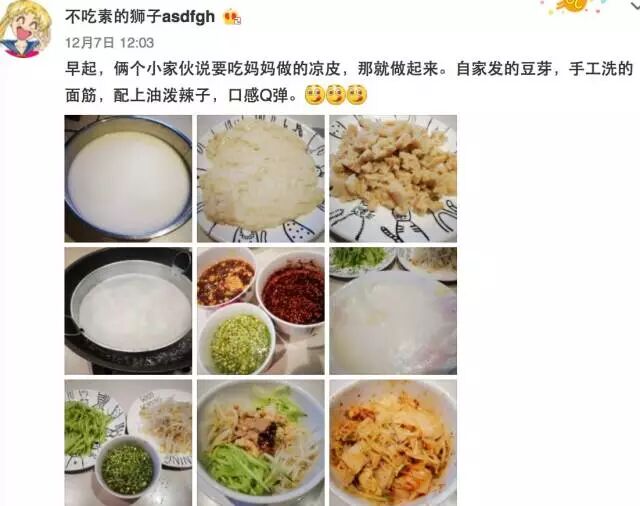 马蓉是陕西人,还亲自下厨给孩子们做自家地道的陕西凉皮。连豆芽、面筋都是DIY。
