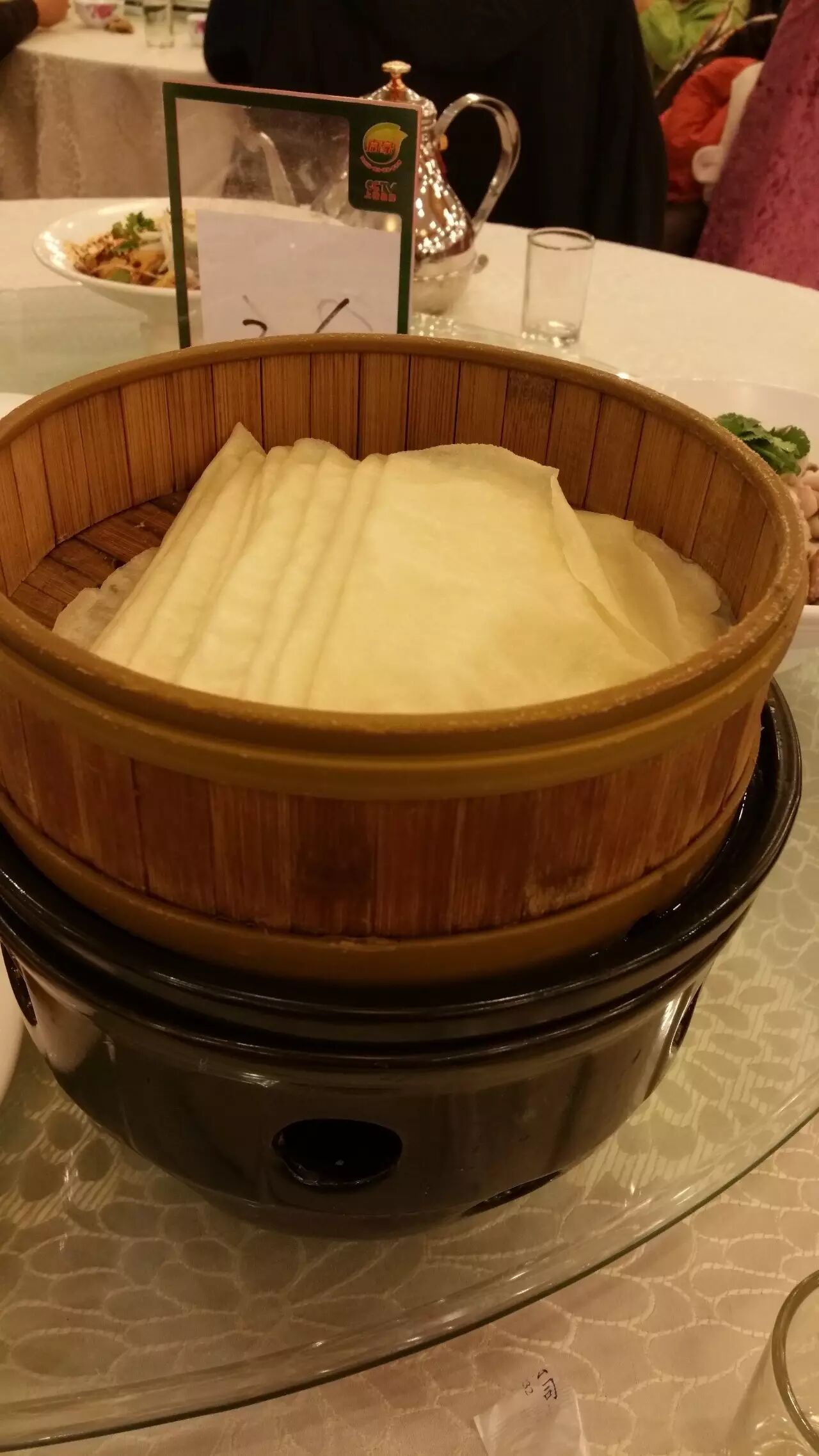 烤鸭饼容易变凉发干,北京万荣美食广场在小笼底下坐了一盆热水加一盒点燃的酒精,就轻松解决了这个问题。