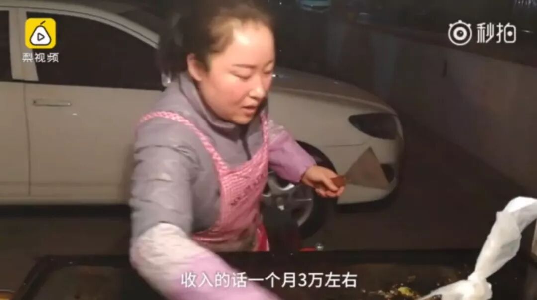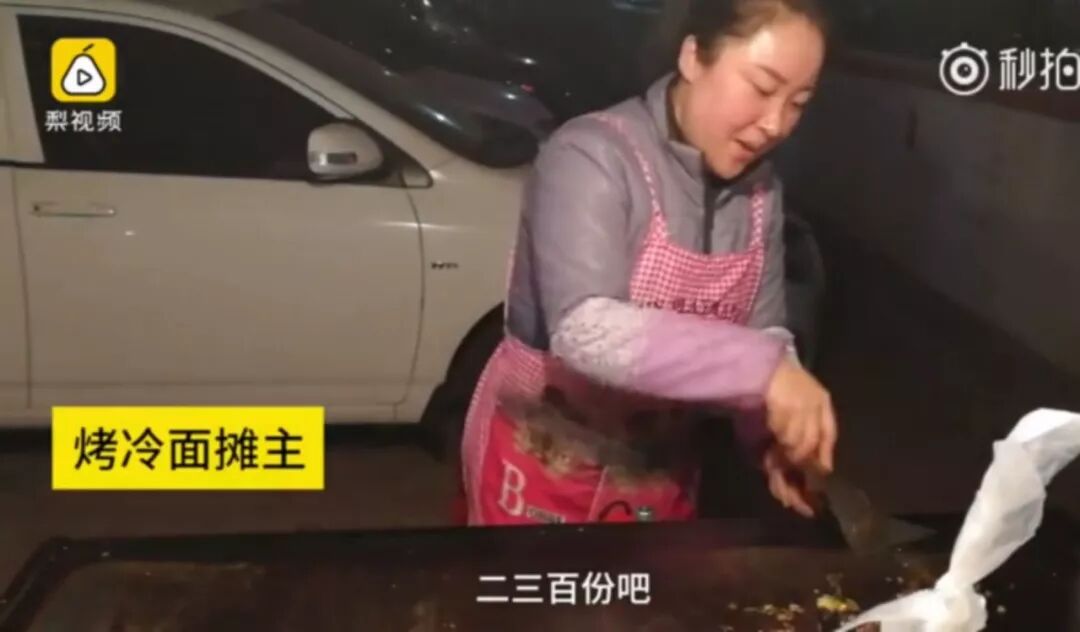 天津有一对夫妻分别在学校门口卖烤冷面,每天排蛮长多的学生络绎不绝,女摊主表示每天大概能卖两三百份月入三万左右,他爱人每月赚的比他还多。