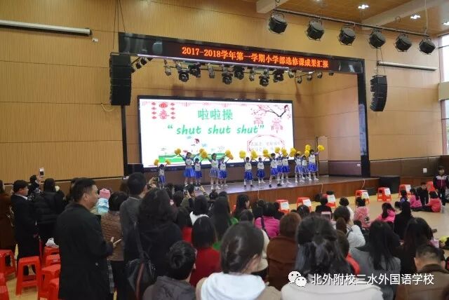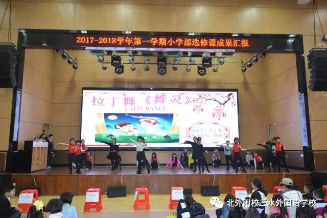 为了拓展学生视野,培养学生兴趣,发展学生个性,促进学生全面发展,本学期我校选修课共开设了78门课程,其中包含新增设的四门外聘课程。期末将近,为了给孩子们搭建一个展示自我的平台,我校于1月2日、5日在小学部多功能厅特举行了选修课成果汇报活动。此次汇报根据课程特点分为三大类:静态作品展示类、上课场室考核类、舞台表演类。一直以来,学校对课程的开发与有效开展极度重视,本次活动小学部全体中层领导全程参与并认真对每一个节目进行评价,同时还邀请家长观看并认真听取家长建议和意见。