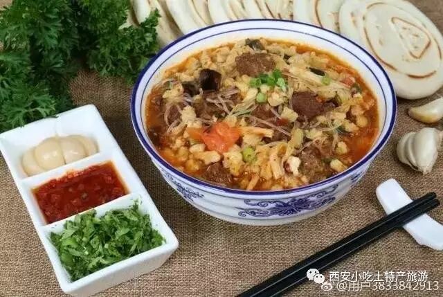 到西安看兵马俑,再咥碗正宗的牛羊肉泡馍,真是‘暸扎咧’。下面一图可让吃货们了解一下西安的牛羊肉泡馍。
