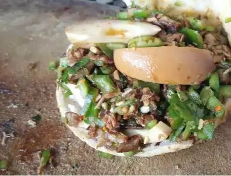 说到中华门附近的美食,最先让人想到的并不是大商场里的各种饭店,而是由两个小哥在17点以后才会开的肉夹馍店。现场烤的馍、养眼的帅哥、卤制的猪肉、牛肉、青椒、香干等,注定它成为一个排队神店。