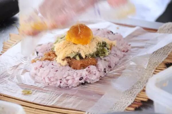 南京人早上爱吃蒸饭,大清早各个区的小车摊必备蒸饭,卖蒸饭的小店也是愈开愈多。然后早就火遍全金陵城的小眼镜蒸饭的生意却一如既往,热度持续上升。很多人会早早的等待在巷口带走一份蒸饭饱饱的吃一顿,直到中午都不会饿!蒸饭可以随意添加任何料,可谓是“麻雀虽小、五脏俱全”。一口咬下去,米很糯,热腾腾的,暖到心窝~为你,我愿受那排队苦~