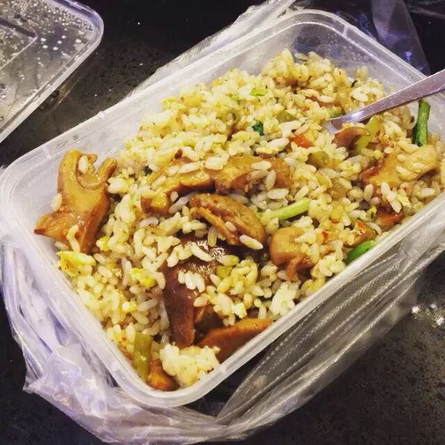 不同于很多夜宵摊,这家摊只卖炒饭、只能外带、只能站在路边吃。没错,就是如此任性的一家店。每一份炒饭里面除了酸豇豆,其他的配料需要另外算钱。而他家的量也是任性的多,毫不吝啬。米饭炒的恰到好处,刚刚好将配料的味道渗入到米饭当中,吃起来别提有多惊艳了!一个炒饭居然能做到如此程度,令人叹服啊。