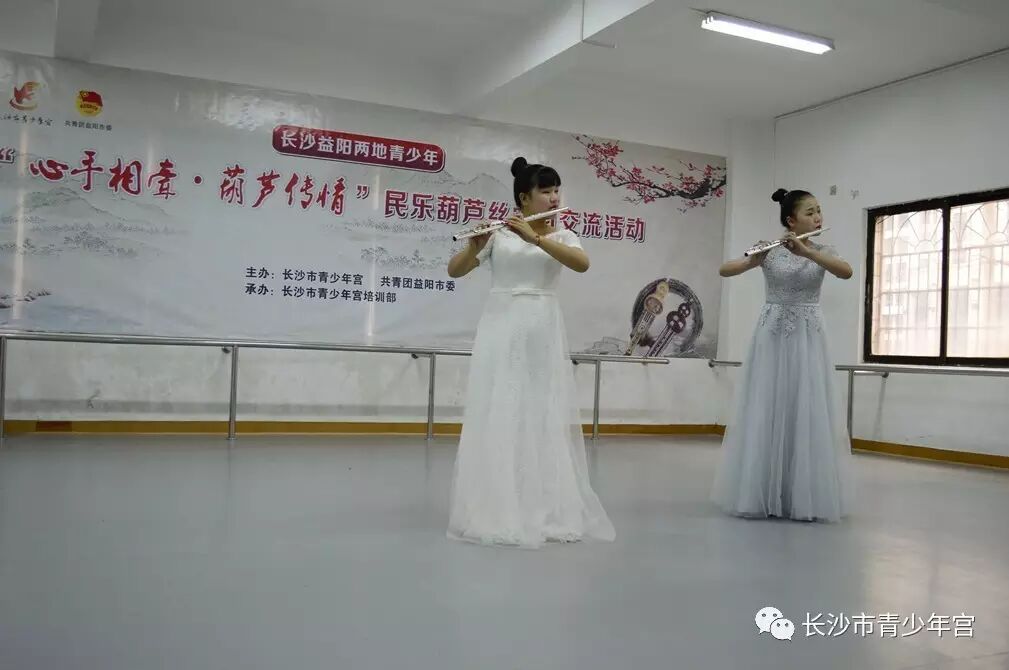 活动中,随着葫芦丝、长笛等管弦乐器的悦耳声响起,由长沙市青少年宫张凯老师指挥、培训部学生表演的节目《喜洋洋》拉开了此次活动的序幕。随后,青少年宫培训部带来了长笛独奏《渔舟唱晚》、舞蹈串烧《天路、竹林、映明月》、二胡重奏《查尔达什》、竹笛独奏《牧民新歌》、舞蹈《敦煌乐鼓》等节目,由益阳市青少年带来的节目葫芦丝齐奏《映山红》将演出推向高潮,现场各种乐器声交汇在一起,丝丝入扣、流畅婉转,动听的音乐像是飞舞的蝴蝶在空中翩翩起舞,也像是叮咚的泉水在山间流淌,给人舒适愉快的感觉,所有观众都沉浸在美妙的音乐声中。最后,交流活动在一片热烈的掌声中落下了帷幕。
