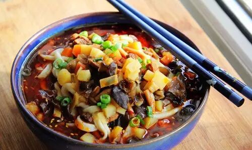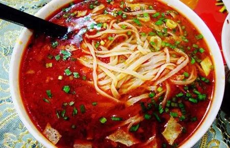 面刚端上来就看到一层红油油的辣椒,这已经让爱吃辣的人忍不住想要尝尝。细长的面条,薄厚均匀,入口筋道。而酸汤更是岐山面精华所在,一口汤下去,酸辣爽口,回味绵长。