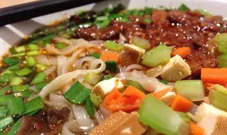 距离美女如云的西外大和陕师大一步之遥。门内是酸辣得当的热腾腾臊子面,门外是性格直爽的养眼姑娘。如是良机,不可多得啊!谁说过桥吃的只能是米线!在云南那叫过桥,在陕西咱叫摆汤!一碗上好的臊子汤,面未至,酸香辣油已惹得人口水乱流。片刻后一碗温汤的白面条如约而至,吃时挑一筷子放入臊子汤中,摆动两下即食!