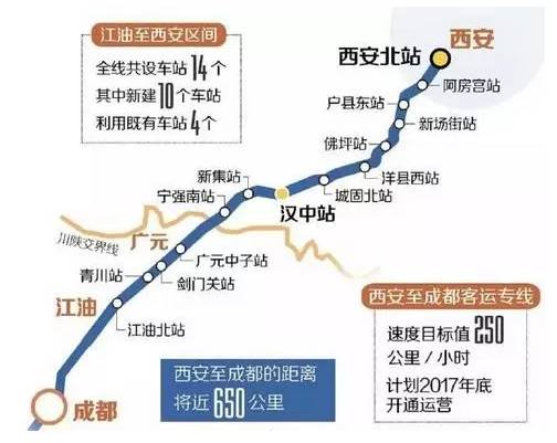 线路走向:西安北—汉中—宁强—广元—绵阳—德阳—成都东