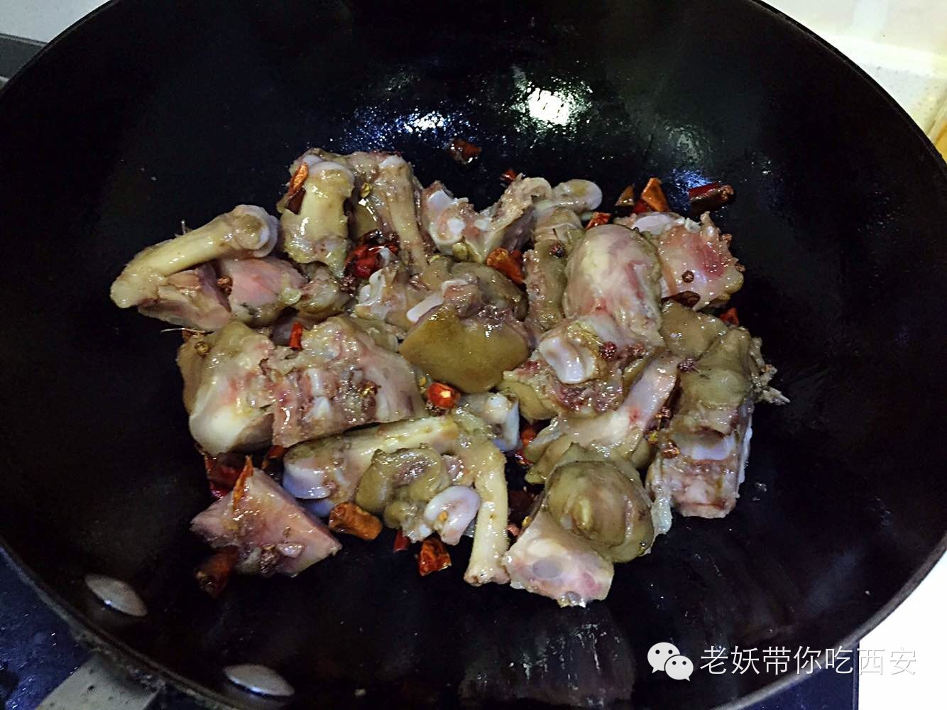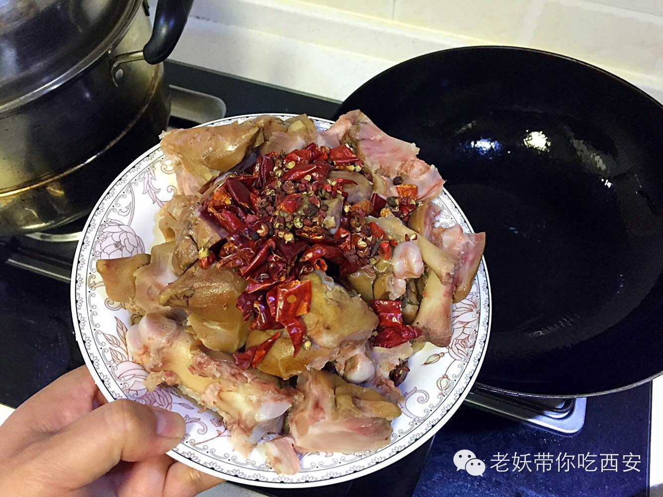 这道菜是猪蹄的二次加工,同样适合烧鸡、牛肉之类。出去玩遇到好吃的猪蹄打包回来几个,拆成小块,一把辣椒段,一把花椒仅此而已,锅内油和平时正常炒菜量一样,热锅凉油,油再五分热时把猪蹄和料同时下锅翻炒,要不停的快炒,辣角、花椒变色即好,糯软咸香、香辣味足
