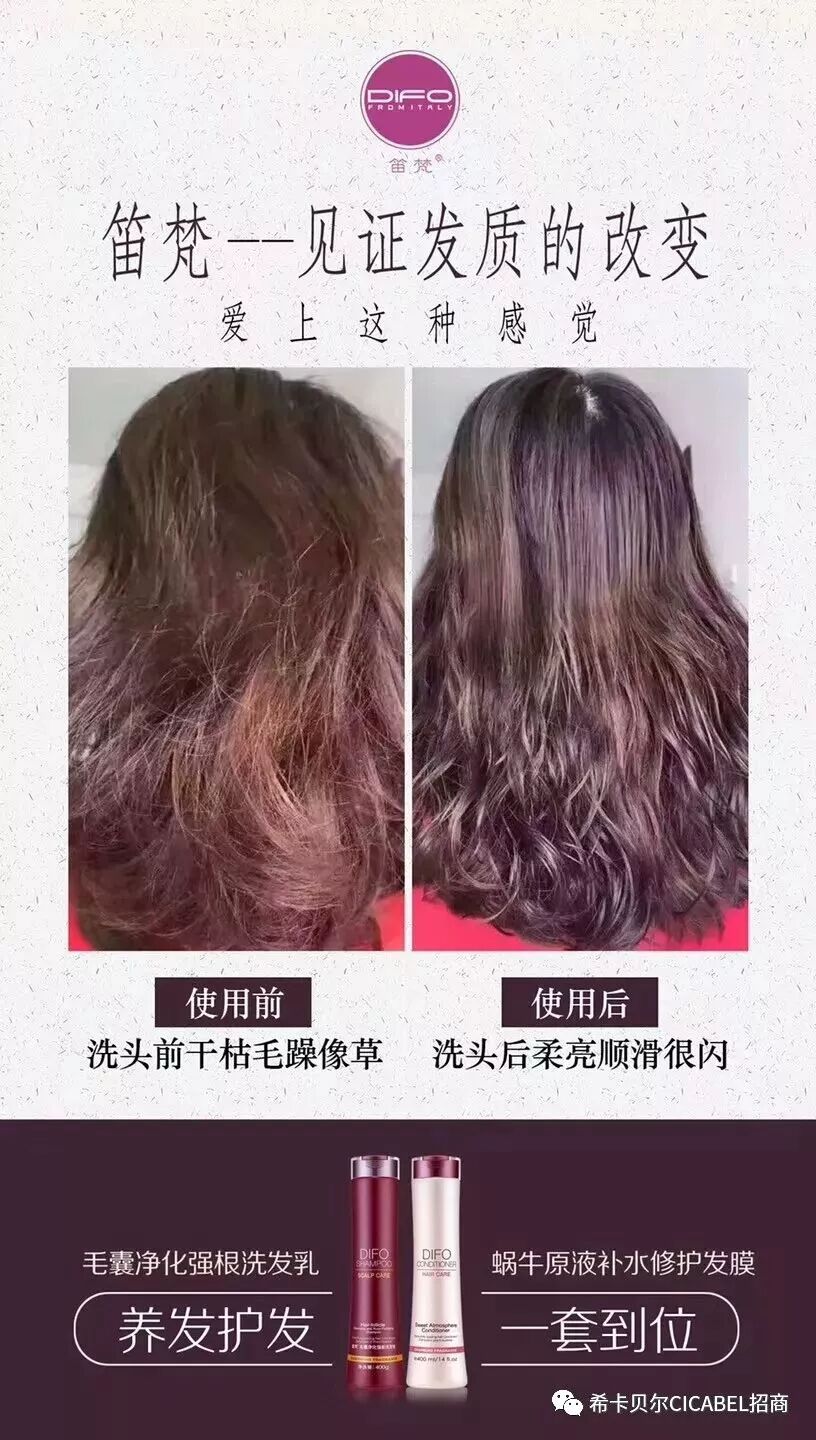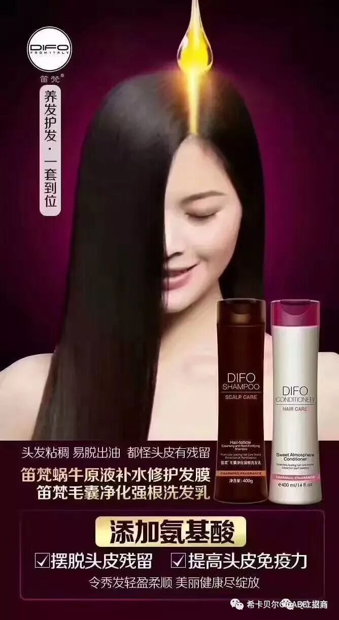 笛梵洗发水一种真正对头皮和发质的关注! 作为专业美发洗护,能够同时解决你脱发、头油、头屑、干枯、分叉受损! 真正元凶—头皮不健康,头皮和脸皮是同一张皮,头皮松弛、毛囊堵塞导致面部松弛、皱纹增加、毛发营养不够! 1958意大利笛梵洗护套装采用全进口医学植物配方,有效清洁毛囊、拉紧头皮、急速修复受损发质!48小时奢华阿玛尼香水留香