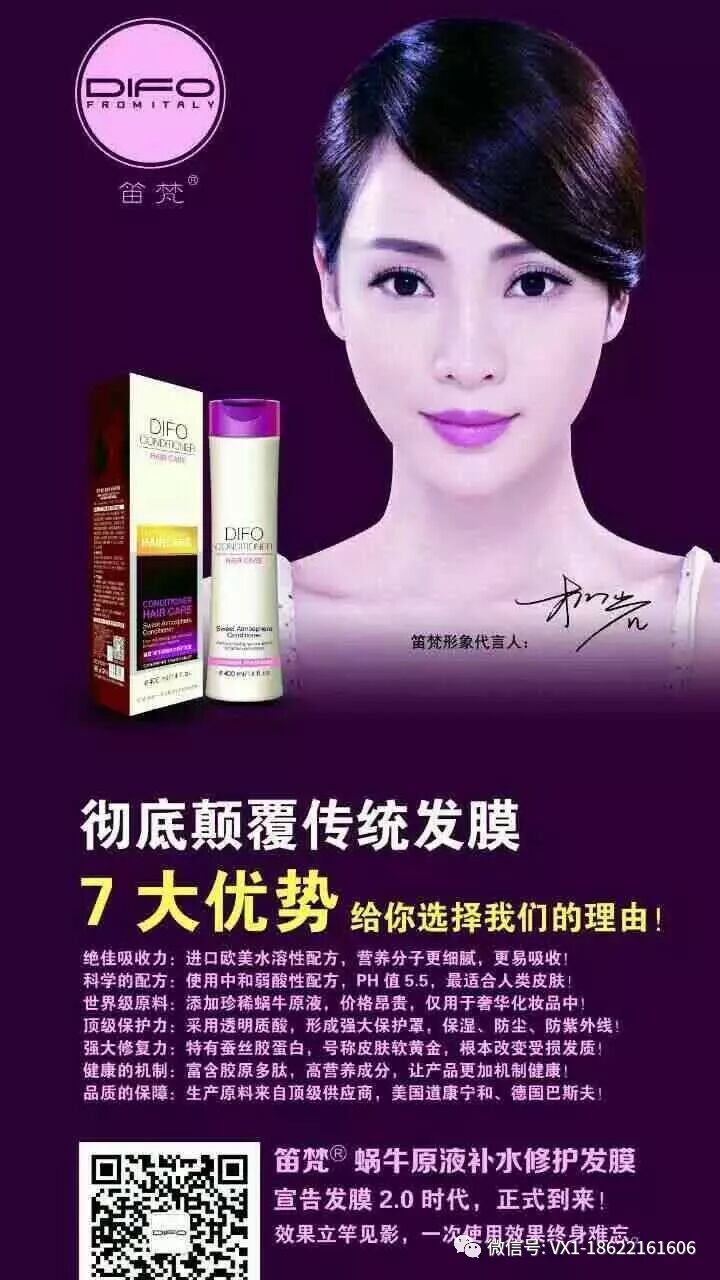 笛梵蜗牛原液补水修护发膜采用了可以快速吸收的水溶性配方,弱酸性的中性配方调节皮质,添加了世界顶级阿玛尼香水,持久清香令人心神向往。2016年一场新的洗护风暴即将来临,你还在等什么?女神柳岩亲情代言,并且各大卫视有着笛梵公司的赞助一款真正可以补水修复发芯的补水修复发膜,一款好发膜原料都是高大上的上品,是一款高端大气上档次的女神款发膜!有意者加导师微号rich_xuewen。