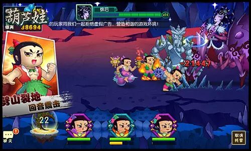 《葫芦娃》是由掌上纵横与49游联合发行,傲世堂倾力研发的一款极具回忆风的同名动画正版授权手游。游戏完全遵循原作动画,采用标志性的“剪纸风”为游戏视觉画风,复原移植了原著动画的剧情、人物等,以DIY养成为基础,开创了“葫芦装备”与“葫芦农场”的创新玩法。蛇精、蝎子精、蛤蟆精再次出山作恶,你是否还有勇气与葫芦七兄弟、爷爷、小蝴蝶并肩作战,拯救葫芦山?穿越时光,重回童年,开启葫芦新传说!
