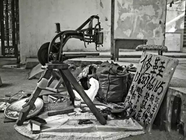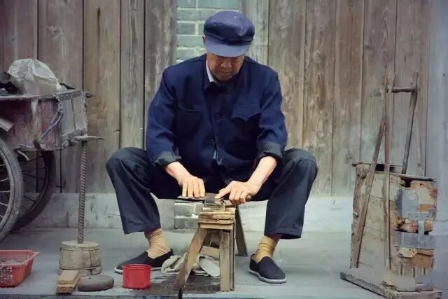 这行当手艺人谋生,形单影只的走街串巷着。很难想象,曾经在大街上有7、8个匠作在街上揽活是何种风景。记忆最深刻的一句话就是“起刀磨剪子咯……”,妈妈听见吆喝声就拿着家里老旧的菜刀下楼而去。老人的砂轮一圈圈转动,让刀剪锋芒毕现,不知会在谁家案头,切磋出一顿顿美味佳肴。