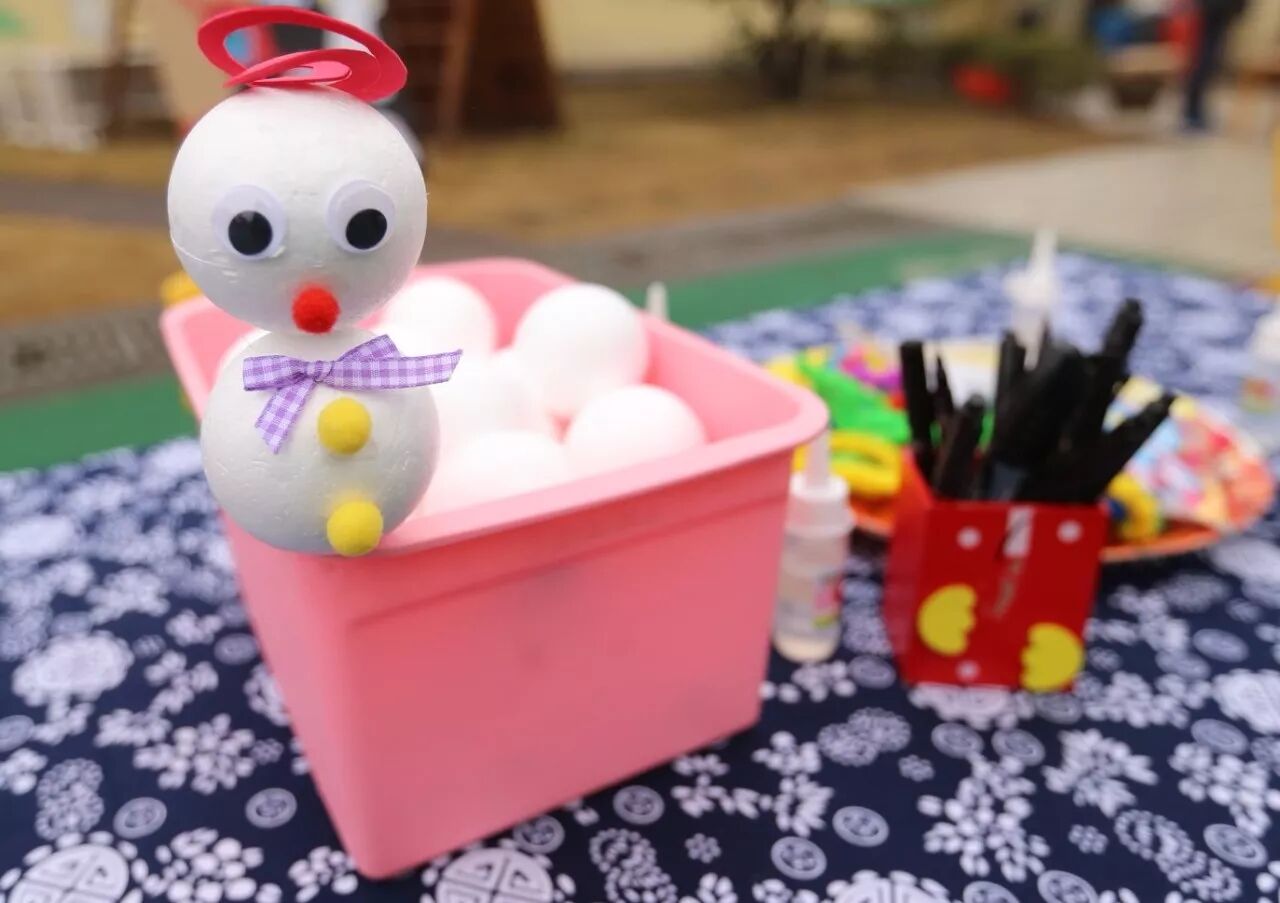 粘一粘,贴一贴,一个可爱的雪娃娃做好了。