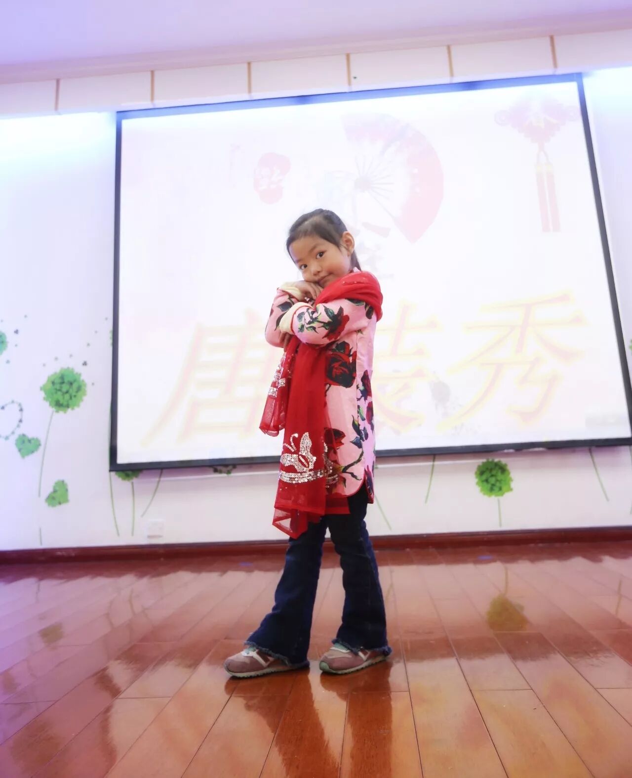 各式精美的唐装,为新年增添了一份喜庆。瞧,我们摆出了可爱的造型,调皮的咧嘴、别致的“爱心”、点步、手叉腰、“少林功夫”和“展翅飞翔”等等,我们的童心与唐装文化的紧密融合,比T台上的模特还靓丽呢!