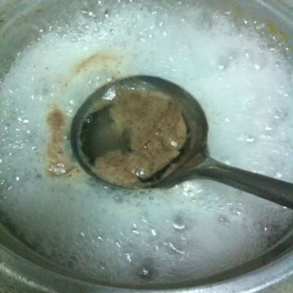 3、将所有调料放进锅里煮成浆之后改成最小的火,不用熄火。