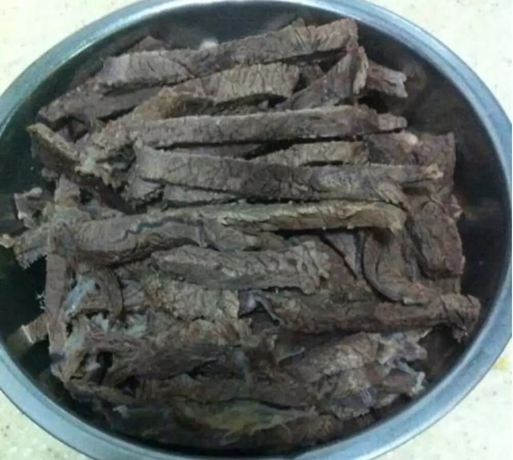 配料:牛肉50kg、盐2.0kg、特级酱油1.5kg、白糖1.5kg、味精150g、曲酒500g、五香粉250g、茴香粉100g、草果粉100g。