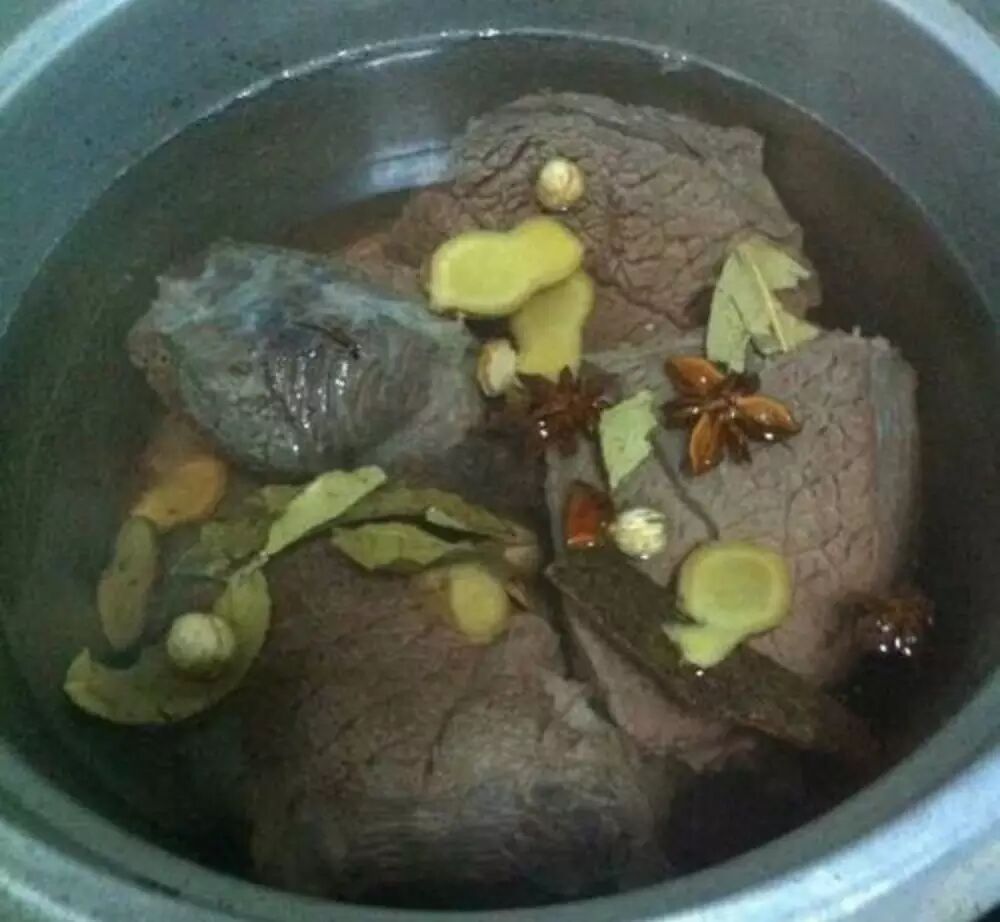 4煮几分钟就可以捞起来,冲干净再放锅里煮再加八角三个,香叶三片,老姜几片,还有是白寇还是什么不认识,也加几个,桂皮一块,