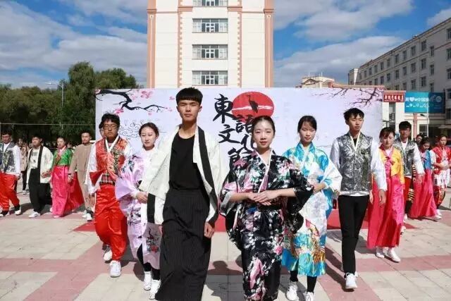 本次开幕式包含民族表演、民族美食、民族服装、民族工艺品等文化展示,现场还设置了民俗游戏等活动。在民族表演环节,全体师生观看了源于朝鲜巫俗的朝鲜族代表性的扇子舞、鼓舞;日朝阿外籍教师、专业课教师和学生的合唱;源于日本祭祀文化的日本传统舞;展现日朝阿民族服饰的服装走秀,时尚与潮流文化的宅舞;中华传统文化的中国武术等具有民族文化内涵的节目。在广场两侧,同学们身着日朝阿民族服饰进行民族美食、民族工艺品展示,日本的关东煮、樱花茶,朝鲜的炒年糕、紫菜包饭,阿拉伯的手抓饭,同学们的手绘面具、千纸鹤耳钉、阿拉伯香囊、纹身画等美食与民族工艺品得到了全校师生们的一致好评。民族游戏、和服试穿展台为同学们体验、感受异域文化提供了平台。