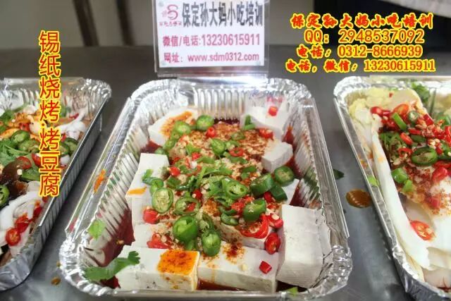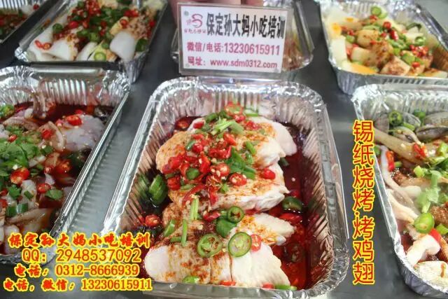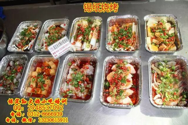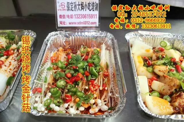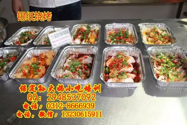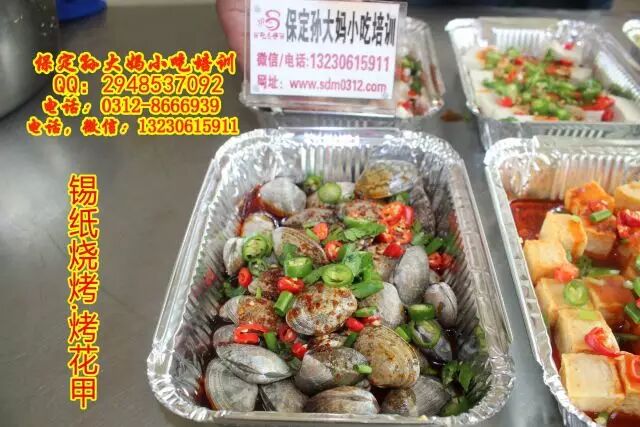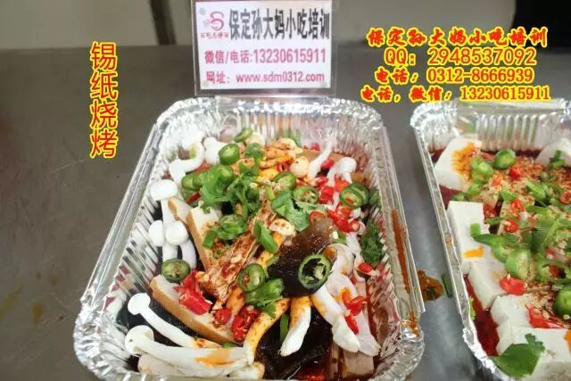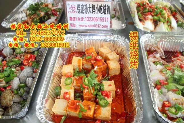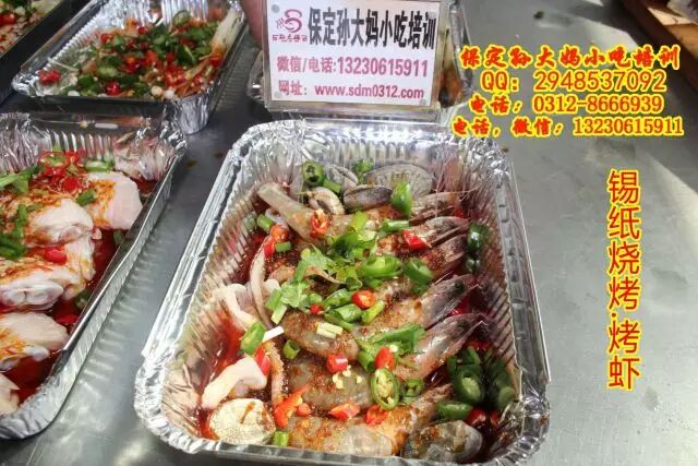 保定孙大妈小吃培训,锡纸烧烤,顾名思义,就是在锡纸上烧烤,可以烤鱼烤虾,烤鸡爪烤鱿鱼,烤豆腐,烤金针菇娃娃菜等多种蔬菜,锡纸花甲等,主要学习熬红油酱,和汤的调制,学习锡纸烧烤技术,来孙大妈小吃培训,咨询电话:0312-8666939.13230615911