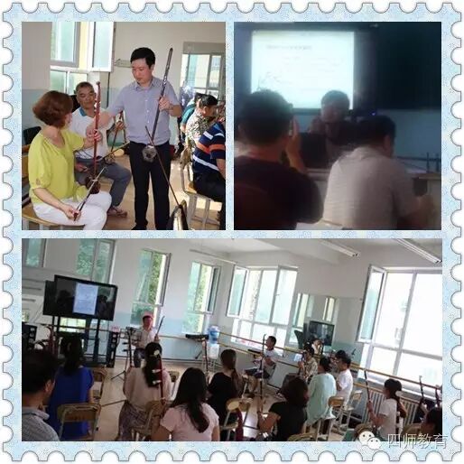 6月15日,四师各团场学校的中小学音乐教师及该团慕名前来听课的二胡爱好者近40余人汇聚在综艺楼三楼教室,认真聆听师一中音乐老师韩哲的《浅谈二胡教育的传承与发展》和76团中学音乐老师徐德虎的《二胡入门常识》讲座,两位老师通过浅显易懂的语言,向与会者穿插讲述了二胡艺术的历史、弓法指法的正确运用等一系列技术要求方面的知识,让大家受益匪浅。