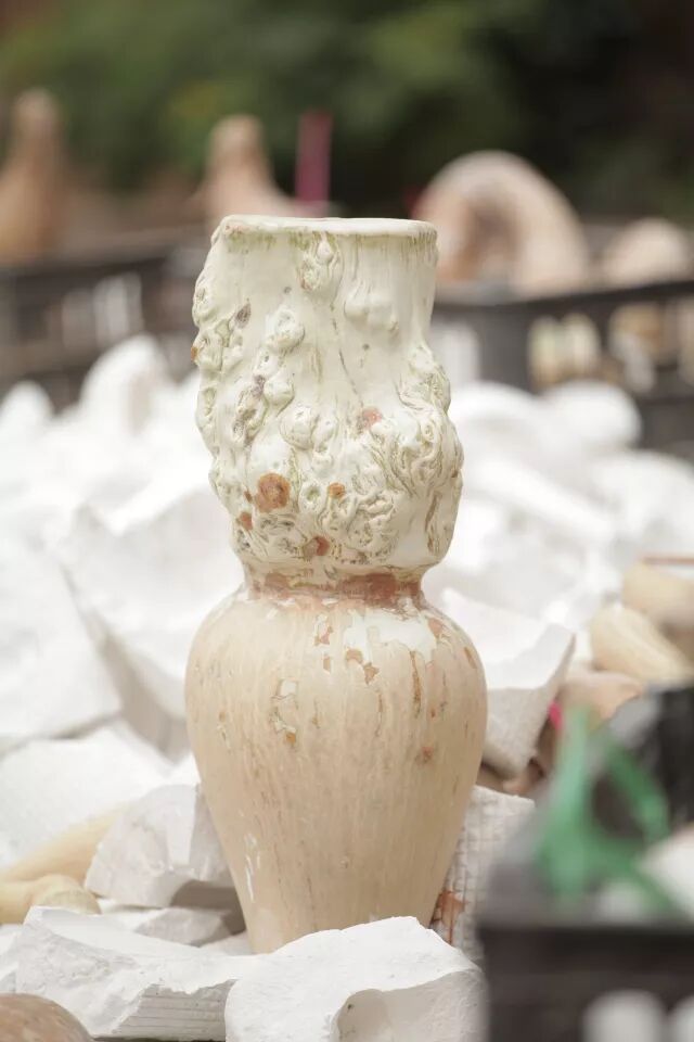 这些图形都曾经历过雕塑、蜡模在翻制,最终被印在石膏的内壁中。仿佛“出生”便被规划好,早已成为黄全华心中的样子。