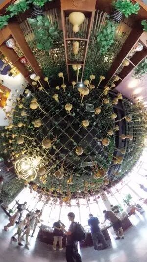 1000多件葫芦展品被分成六个区,既有用烙画技术展现的伟人肖像,也有彩绘的各种卡通形象,还有以雕刻手法完成的作品。最吸引眼光的,则是巨幅的葫芦贴画——《一路一带》,恢宏壮观,象征着强大的中华民族像一条巨龙,从古丝绸之路源头腾飞。整个“葫芦庐小镇”占地上万平方米,共有超过2万件葫芦艺术品展出。这里有着中国最大的葫芦博物馆。走进博物馆,藤萝密布的展厅上方吊挂着多个形态各异的葫芦吊饰,足以让人眼前一亮。由此前行,从屋顶到墙壁再到屋内摆件,满眼都是葫芦,范制葫芦、烙画葫芦、雕花葫芦,可以说是应有尽有,小的好像一颗花生米,大的足有1米高。(作者:新报吴彦)