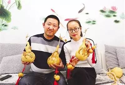 沧州盐山县圣佛镇冯庄村32岁的冯少帅,对“葫芦烙画”情有独钟,技艺精湛。妻子任艳萍默默支持丈夫的工作,经常帮助丈夫查找“葫芦烙画”的有关资料,给丈夫拍摄烙画现场的视频和照片,发到微信朋友圈和视频网站进行宣传推广。在盐山当地,冯少帅和任艳萍这对恩爱的小两口,被人们亲切地称为“葫芦夫妻”。