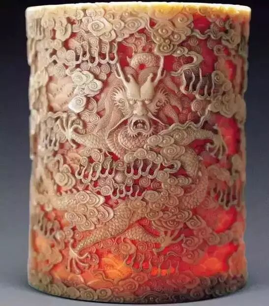 乾隆象牙雕海水龙纹笔筒,“乾隆御用”四字二行篆书款