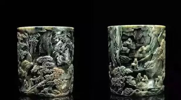 乾隆碧玉御制《石室藏书》笔筒