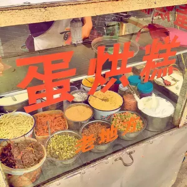 老地方的蛋烘糕口味相比现在一些新兴蛋烘糕稍少,基本上都是经典口味,奶油、芝麻白糖、花生粒、果酱、沙拉、山楂等甜味、也有香辣酱、豇豆、芽菜肉末、凉拌海带、大头菜、土豆丝、肉松、青椒火腿等咸辣味道的。客人可以自由搭配自由发挥,依稀还记得当年最流行现在依然经典的便是奶油配香辣酱的奇葩口味,风靡当年整个十八中……