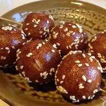 整个糖油果子的制作过程大概需要15分钟,从搓成小坨面,到最后出锅洒上白芝麻的时间。最让我觉得有意思的就是面粉不用搓,老板把小面块下锅,不停的翻炒,小块面粉自然就变的圆圆的。快好的时候,关火下红糖不一会就起锅了。老板还会提醒你,现在吃烫嘴也不脆,等个5、6分钟再吃,那个时候最脆,微微又有点温度最好吃。