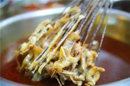 据说成都最初的钵钵鸡,出现在玉林一带。而在成都呆得久了,保留土鸡土钵钵讲究的钵钵鸡,不免带上了草根气。该用的土钵钵变成了不锈钢洗脸盆,土鸡汤变成了猪棒子骨头汤。签签上串的东西,从鸡肉变成鸡杂等,加上素菜,还丰富了起来。