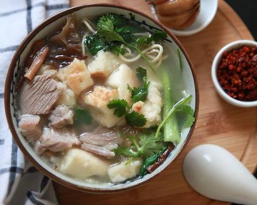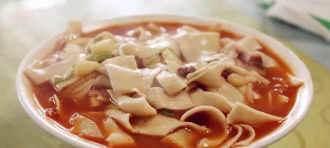 这是青海的一道家常菜,面片不是擀出来的,而是揪出来的,捏扁了之后直接投到沸水里。《爸爸去哪儿》里面张岳伦就有做过噢~
