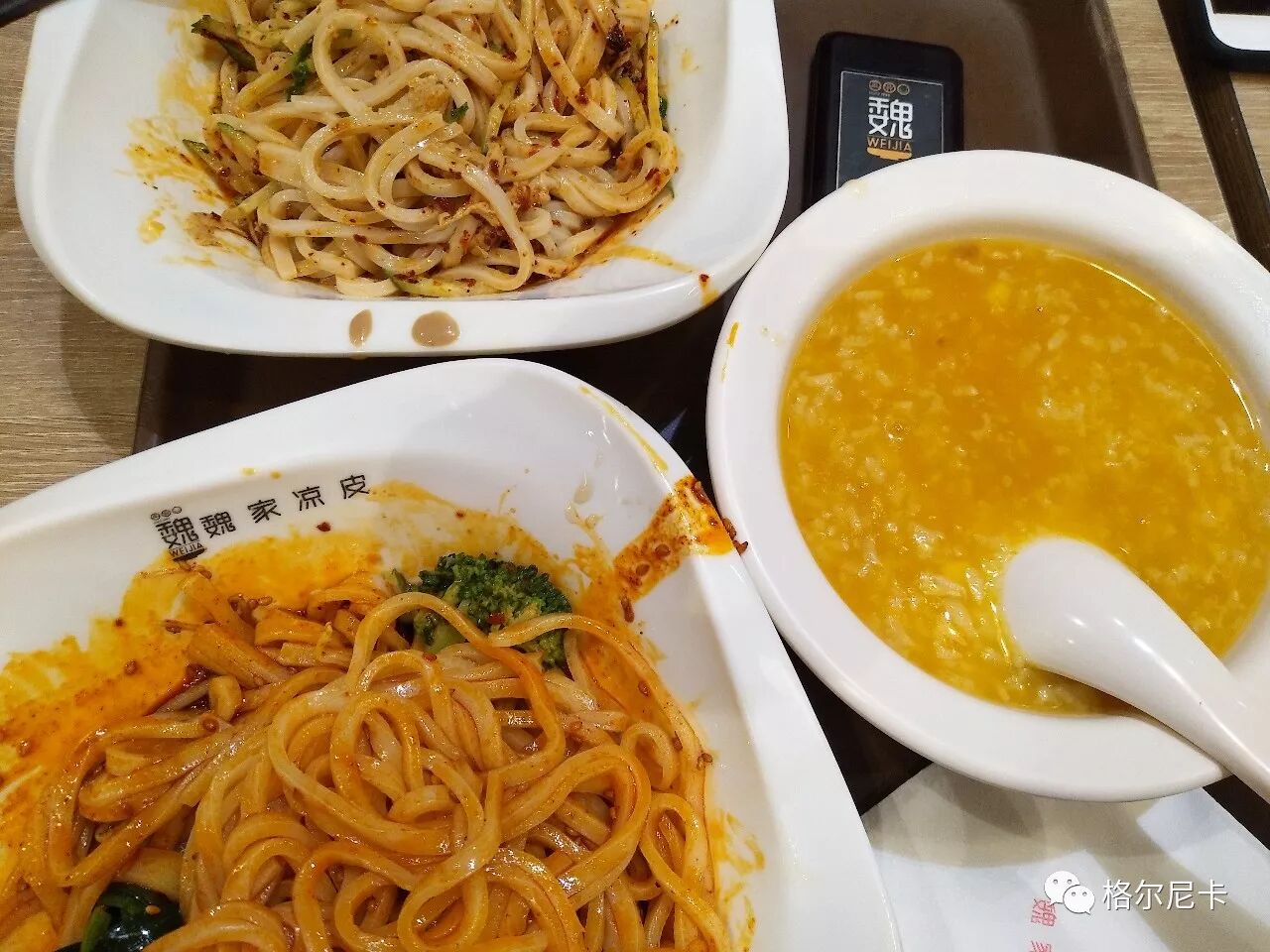 24号早晨,我俩在吉源国际酒店碰头。把行李放到宾馆后,孙孙带我吃了第一顿陕西美食:凉皮and肉夹馍,在一家叫魏家凉皮的店,在西安普及率媲美“开封菜”。