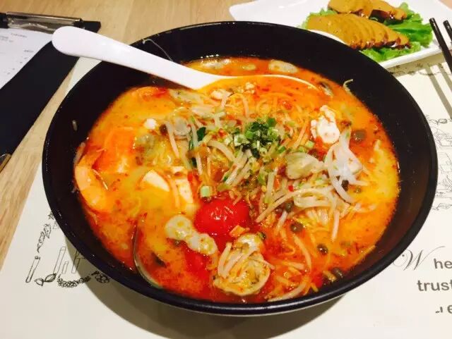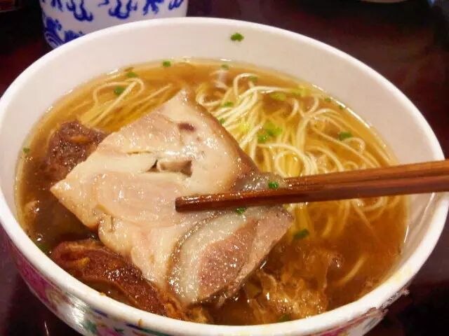 店面福建中路靠近广东路很好找,什锦海鲜面是这家的招牌面,每天要用掉百来斤的海鲜,沈家门新鲜直达,满满当当的一碗海鲜什锦面,超大一碗里面有半只梭子蟹、一块熏鱼、黄鱼、带鱼,若干蛏子、蛤蜊等等,面条从头吃到尾都是那股子鲜味!四川小吃店,店里随处可见的熊猫元素。担担面口感地道,面条滑爽,肉燥香香辣辣,有肉糜、咸菜、花生,麻麻辣辣特别香哦~来碗凉粉还可以解辣 。港式小吃店,装修新颖,坐窗口的位置就能看到对面郁郁葱葱的满眼绿色的襄阳公园,很幽静。牛腩鲜虾云吞面,量很大,鲜虾云吞个头十足,云吞里满满的肉还有虾仁。牛腩肥瘦相间,口感很酥烂,汤底清鲜,一碗下去很管饱。主打泰国街边美味小吃的小店,甲泰船面20大洋一份,泰式香料味道浓郁,配菜有猪肝,丸子还有猪油渣等等,米线酸酸辣辣,口感十分滑爽,配上浓汤和料头,鲜美入味。点个
