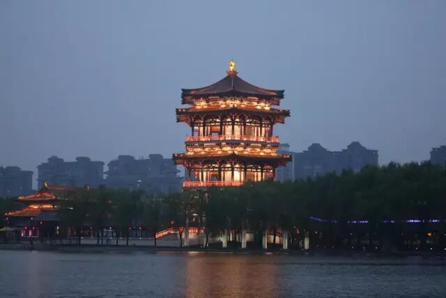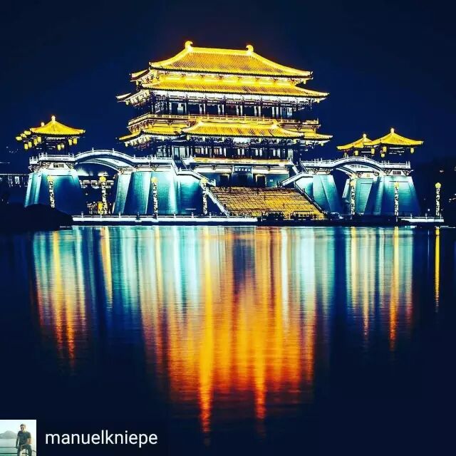 ▽夜西安的清风朗月和古老建筑