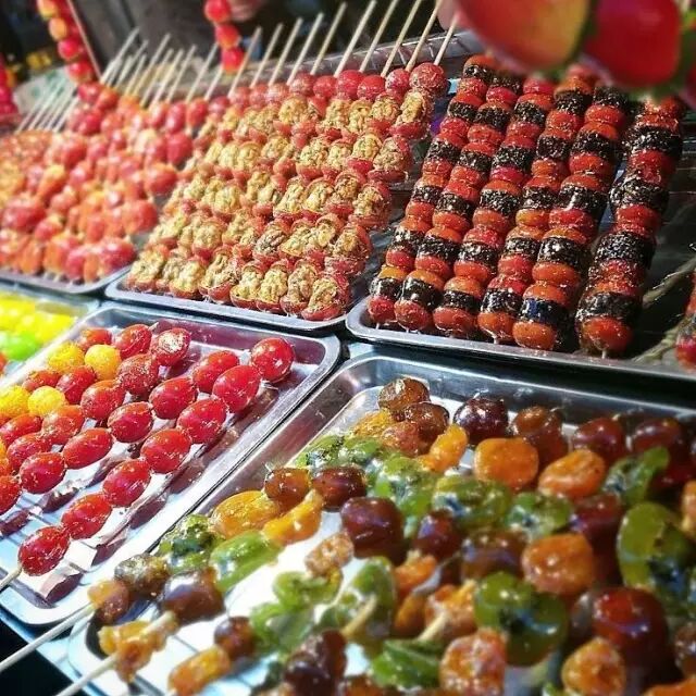 ▽来一串冰糖葫芦,糖汁裹着山楂就像浓情包围蜜意