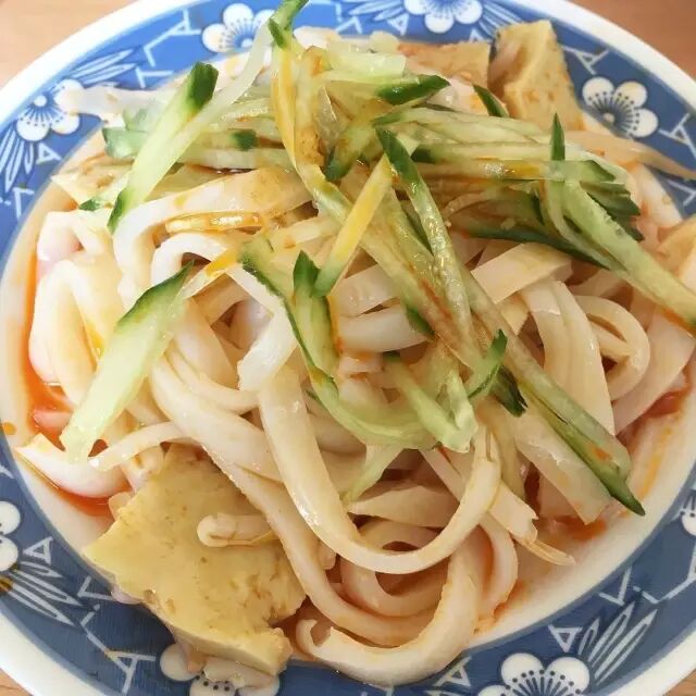 ▽凉皮,酸香可口,黄瓜丝儿晶莹剔透,夏天的味道