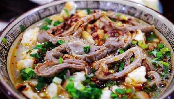 有人看到羊血可能难以接受,但是这里的羊血没有丝毫腥味,鲜嫩爽滑,辣椒油让整个碗都是通红的,把馍粒泡在汤里,吃得嘴角发麻、满头大汗。粉汤养血老字号多是通宵营业,为了要让天寒地冻里赶路的人们喝完暖汤。